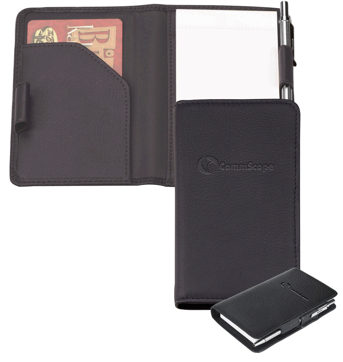 - Business card pocket located on the inside left side of the jotter.