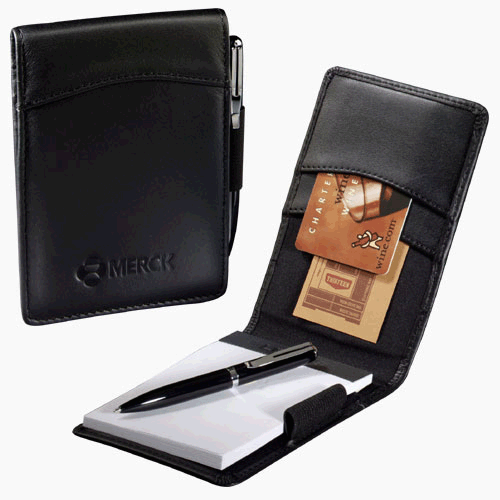 Buy a Leather Wallet Notepad Holder with customized die imprinting below: